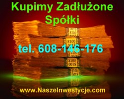 Kupię zadłużone spółki z o.o. z zadłużeniem wobec ZUS, US ,dostawców krajowych i zagranicznych, spółki w upadłości , z zagubionym leasingiem/kredytem/ majątkiem i dokumentacją , spółki uśpione , z niskim kapitałem, spółki bez zadłużenia, absolutnie każdą inwestycjaniezalezna@gmail.com www.naszeinwestycje.com tel. 608-146-176