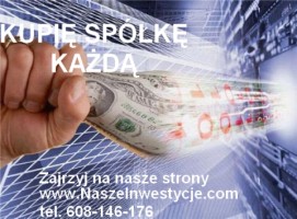 Kupię zadłużone spółki z o.o. z zadłużeniem wobec ZUS, US ,dostawców krajowych i zagranicznych, spółki w upadłości , z zagubionym leasingiem/kredytem/ majątkiem i dokumentacją , spółki uśpione , z niskim kapitałem, spółki bez zadłużenia, absolutnie każdą inwestycjaniezalezna@gmail.com www.naszeinwestycje.com tel. 608-146-176